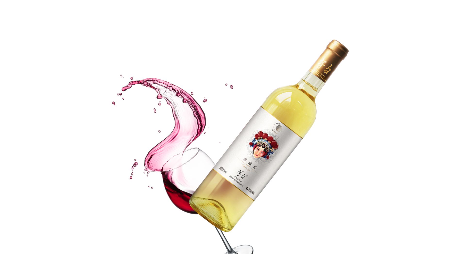 首先,瓶身的標(biāo)簽上印有“茅臺國粹系列紅酒”的字樣,字體清晰、大氣,突出了產(chǎn)品的品牌名稱和系列名稱,便于消費(fèi)者識別和記憶。標(biāo)簽的邊框分別采用了紅色和藍(lán)色,與瓶身的白色形成了鮮明的對比,增加了產(chǎn)品的視覺沖擊力。標(biāo)簽上還有一朵紅色或藍(lán)色的花朵的圖案,寓意著葡萄酒的香氣和品質(zhì),同時也與茅臺酒的傳統(tǒng)文化符號——茅臺花相呼應(yīng),展現(xiàn)了產(chǎn)品的文化底蘊(yùn)和創(chuàng)新精神。