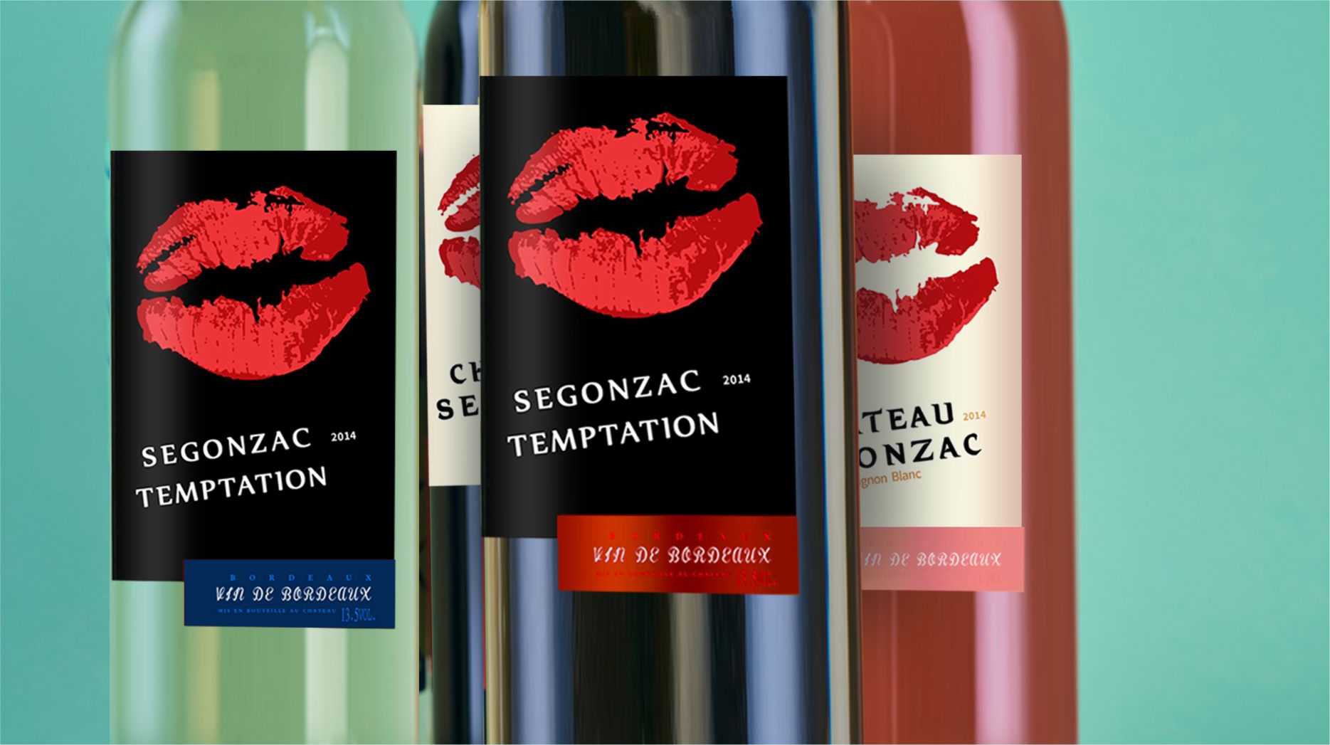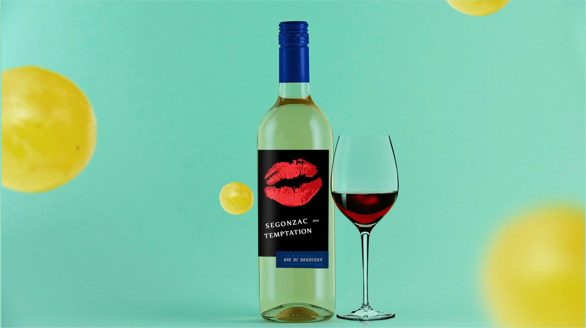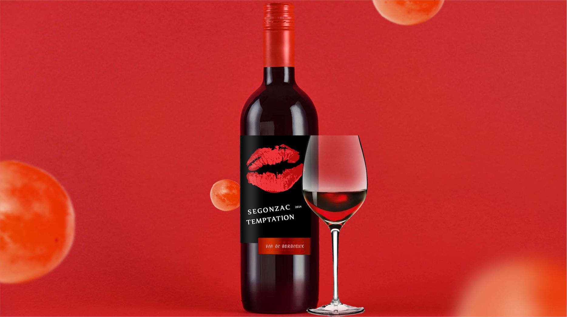 文字設(shè)計:這款紅酒的文字設(shè)計比較簡潔,只有品牌名稱和產(chǎn)品名稱兩部分。品牌名稱“SEGONZAC TEMPTATION”采用了襯線字體,顯得高雅和穩(wěn)重,與酒瓶的瓶蓋相呼應(yīng),體現(xiàn)了品牌的歷史和傳統(tǒng)。產(chǎn)品名稱則采用了白色的襯線字體,顯得現(xiàn)代和時尚,與酒瓶的白色標簽相呼應(yīng),突出了產(chǎn)品的特色和差異化。文字的大小和位置也恰到好處,既不搶占紅唇的視覺焦點,又能夠清晰地傳達出信息和意義。