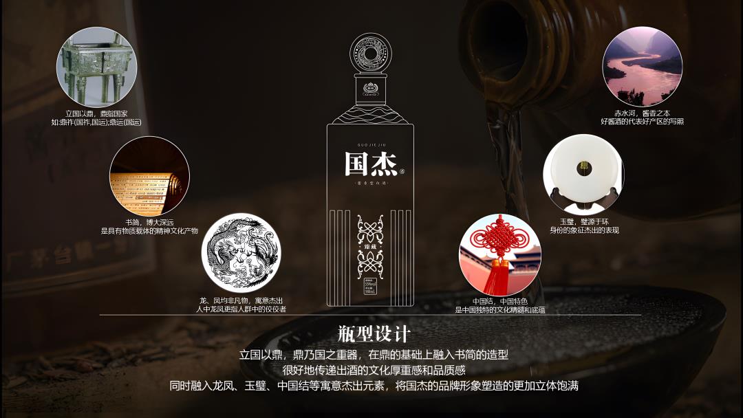 外盒設(shè)計融入了原創(chuàng)手繪復(fù)刻的千里江山圖,融大境江山于國杰酒之中,酒中有萬物,通過鏤空的造型展露出來,低調(diào)中不失文化高端感,將國杰酒的厚重大氣傳達(dá)的淋漓盡致,品牌形象塑造的更加立體飽滿。